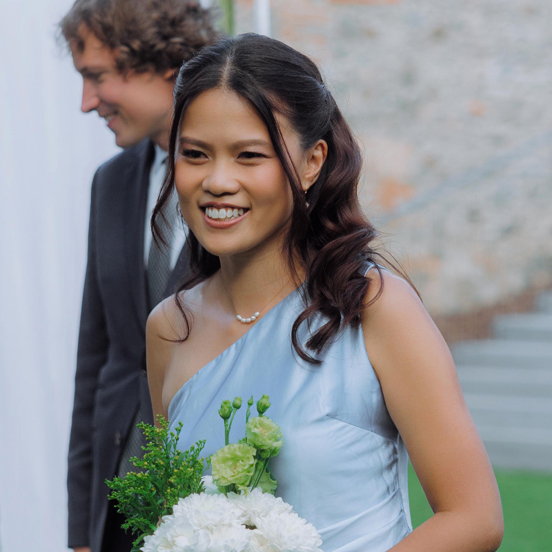 Bridal looks designed to last from the first kiss to the final dance. Each wedding service includes a pre-wedding trial in Prague, day-of application with long-wear products suited to Czech summer and winter conditions, individual lashes, and a personal touch-up kit. Available for ceremonies in Prague Old Town, Vinohrady, château weddings outside the city, and destination weddings across Europe.